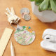 Printed on one side of a standard button that is securely attached to a sturdy keychain