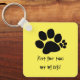 Keep your paws off my keys! is the text scratched beneath the print of a polydactyl cat'a paw. On back is a white area to hold your customised contact information.