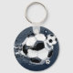 This chain keychain is shown with a art print of a soccer ball.