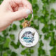 This metal stylish keychain is shown with a Yellowstone fishing print design.