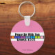This is key chain is special because of the following : Genesis 43:23 bible verse Peace Be With You, vibrant multi-colour squares and vibrant light pink background