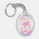 Never leave home without your favourite photo, design, or inspirational message attached to your keys with this custom circle keychain. Designed to withstand daily wear and tear, this keychain displays designs, text, and photos in vibrant clarity and brilliant colours.