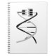 Double helix (DNA) diplayed in black and grey with the last chain as paino keys.