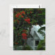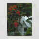 This postcard features a dry-brushed photo of a Royal Poinciana tree with bright red blossoms, overhanging a typical Key West tin roof.