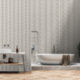 A khaki grey and white two inch wide butcher stripe wallpaper.