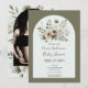 Khaki Olive Green Watercolor Floral Baby Shower Invitation
