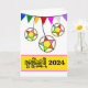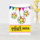 Cambodian Khmer New Year, Choul Chnam Thmey paper greeting card with bamboo star decorations attached to colourful triangular bunting. Add a date, change the date on the cover as you like. Personalise the verse inside as needed, Art, image, and verse copyright © Shoaff Ballanger Studios, 2024.