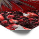 This poster features a spiraling abstract design in reds, silvery greys, white and black - inspired by the unfurling silver fern leaf, known in New Zealand as the koru.