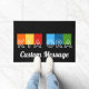 Bright, colourful welcome mat for your doorway or entrance. This special and unique doormat has a black backdrop, with a design featuring the Kiwi phrase "Kia ora" as well as text which can be customised or removed as suits. "Kia ora" comes from the language of Māori, the indigenous first nation people of Aotearoa New Zealand. Kiwis use it as a greeting, welcoming, and saying hello, though it can also be used to show appreciation and thanks and is used throughout NZ.
