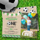 Kicking The Big One | Soccer 1st Birthday Photo Invitation