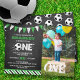 Kicking The Big One | Soccer 1st Birthday Photo Invitation