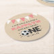 Kicking The Big One | Soccer 1st Birthday Round Paper Coaster