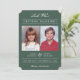 Send modern style "old school photo" save the dates, using your childhood photos! The background colour can be easily customised to any colour you'd like - on both the front and back. Shown: dark sage green. Modern white stripes design on the back.