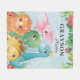 Pack of dinosaurs with tropical leaves and polka dots background plus your very own custom name and last name.