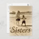 Two girls stand at the beach. A cute picture of sisters to show off sisterly love.