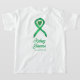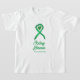 The green ribbon is used to both show awareness for kidney disease and for organ transplant or tissue donation awareness. There are many kinds of kidney disease including chronic kidney disease (CKD), diabetic kidney disease, IgA nephropathy, polycystic kidney disease (PKD), simple kidney cysts, kidney infection (pyelonephritis), and kidney stones. Customise this awareness ribbon t-shirt apparel with a personal awareness message. See more of our art at AwarenessGallery.com.