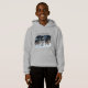 This kid's pullover hoodie is shown with a photo print of a wolf pack in the forest of Yellowstone National Park.