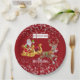 Red fun plate featuring Santa Claus, reindeer and snowflakes for fun Christmas/Any party. Make the Christmas/Birthday party fun and frolic with this unique plates. Customise text is available to fit in your Font Style. Visit my store for more such products.