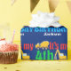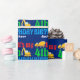 Cool personalised construction vehicle blue wrapping paper for a kid who likes cars and trucks. Add your child's name below the cute digger and dump truck design for a kid turning four who likes vehicles. Adorable 4th birthday custom gift wrap.