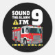 Kids 9th Birthday Boy Fire Truck 9 Nine Year Old Classic Round Sticker