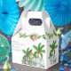 Sweet animal safari, childrens birthday party thank you favour box, featuring a jungle safari theme, with palm trees, tropical flowers, a tortoise, a monkey, rhino, giraffe and parrot. The box has an easy to customise birthday thank you template, the font styles, sizes and colours can be changed by clicking on the customise further link after personalising.