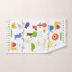 Kids Animal Themed Drawings Towel Set backed in white. Why not have fun when your having your bath. Multiple coloured dots, funky shapes and animals make this a perfect towel set for the kids bath.