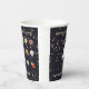Colorful outer space themed kids' birthday party Paper Cups for the aspiring astronaut with a fascination for the planets, solar system, rocket ships and everything out there in the universe. Easy to customize monogram name and change or delete typography details. Faux gold glitter stars and sparkles add to the astral magic. Additional party products and invitation card available in this design to create a co-ordinated party theme.
