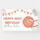 Are you planning a birthday party for your basketball-loving kid? Get your guests excited with this basketball themed banner from Party Swirl! This striking design features a classic white background with a watercolor orange basketball, basketball hoop, bunting and a megaphone. Customise the font styles, sizes, and colours with an easy-to-use template – just click the “customise further” link after personalising. When you throw the party, your guests will be thrilled to know they’ve been invited to a unique and fun basketball themed party. Whether it’s at home with family or at a gym with friends, this banner will surely get them excited. So don’t wait – get this ball rolling and make your basketball lover’s day with Party basketball banner!