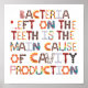 Fun quite about how bacteria left on the teeth is the main cause of cavity production - all written in candy font!