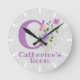 Kids Bedroom Clock. Design features Monogram & Name with Flowers either side in a water colour pastel style. Example name is Catherine. Change name as desired for anyone with a name beginning with C.