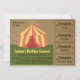 Kids will be excited to receive this birthday party invitation that looks like a carnival admission ticket with its rustic texture, colour palette, carnival tent complete with coupons on the side. This is also perfect for schools that are holding a school carnival. Designed by Rusty Doodle.