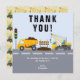 Thank family and friends for attending your little one's birthday party with these cute watercolor construction trucks thank you card. The card can be personalised with the inclusion of your little one's name. The actual thank you message can be kept as-is or edited. The design is cute and simple. The back of the card features a repeat pattern of a construction truck.