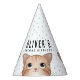 Lovely kid's party hat with cute cat and confetti for a very sweet birthday party.