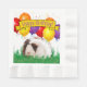 A cute white and brown guinea pig in grass with colourful balloons overhead is the feature on this party napkin template design. Personalise the text field or click customise to select a typeface style, colour, and size you like.