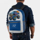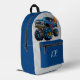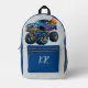 Kids Blue Monster Truck Orange Flames Initials Printed Backpack