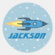 Kids Blue Rocket Ship Outer Space Personalised Boy Classic Round Sticker
