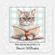 Delight your little reader with this set of bookplates. Design features a cute cat with eyeglasses and an open book. Personalise as desired.