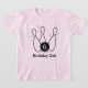 This kids design features a bowling ball striking against pins. Personalise this shirt with an age and name or short phrase. These are fun to wear at a party to honour the birthday boy or girl. This particular design works best with light coloured shirts. I also have this design for dark coloured shirts.