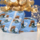 Blue Birthday wrapping paper with cute teddy bear and duck coloured drawing. Personalise this little boys birthday paper with your own name and age. Currently reads Happy Birthday Peyton 2 today. Perfect for wrapping a special second birthday gift. Uniquely designed by Sarah Trett.