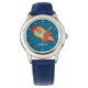 Blue, rocket, space, astronaut, toddler, watch for kids. Custom, Kids, Name, steel blue boys watch. Personalise it with your child's name.