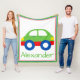 This cute blanket features a bright red, blue, green and yellow toy car. Personalise with your choice of name or special text.