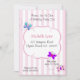 Butterfly Birthday Invitations with swirly butterflies on a pink stripe background. Perfect for kids birthday parties. Customise with your party details.