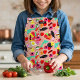 Fun kids apron featuring colourful sweets, candy hearts, treats, and playful food illustrations. Perfect for baking, cooking, crafts, and creative activities. A bright and whimsical design ideal for little sweet lovers and kitchen helpers. Original artwork by Caroline Bonne Müller