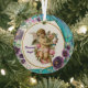 Christmas Angel in Purple with Stained Glass wreath design. Personalise the text of this stained wreath glass Christmas ornament with a name, date, occasion, or quote in the placeholder for text. Make it an annual celebration of togetherness and merry making this Christmas with this beautiful Angel of JOY.