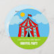 Kids circus carnaval Birthday party invitations. Round circus theme party invites for childrens Birthday or baby shower. Personalizable text and background colour. Cute colourful circus tent design with name and age of child. Whimsical typography. Personalise for boy or girl. Funny circle cut out shape. Gender neutral unisex design. Make circular invites for 4th 5th 6th 7th 8 th 9th 10th 11th 12th 13th Bday etc. Custom accessories for celebrations.