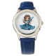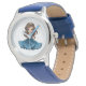 Kids classic leather strap watch shown in blue with a cute little princess print.