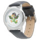 Kids classic leather strap watch shown in black with a cute pirate parrot print.