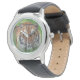 Kids classic black leather strap watch shown with a wildlife exotic tiger photo print. Choose this watch from several styles. Customise this watch or buy as is. Stock Image