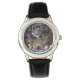 Kids classic black leather strap watch shown with a wildlife wolf photo print.