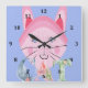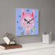 Kids clock with a cute pink comical cat, on a blue background, with the word "Cat" in designer letters. Thanks to Creative Fabrica and the Hungryjpeg for some of the elements in the design.
